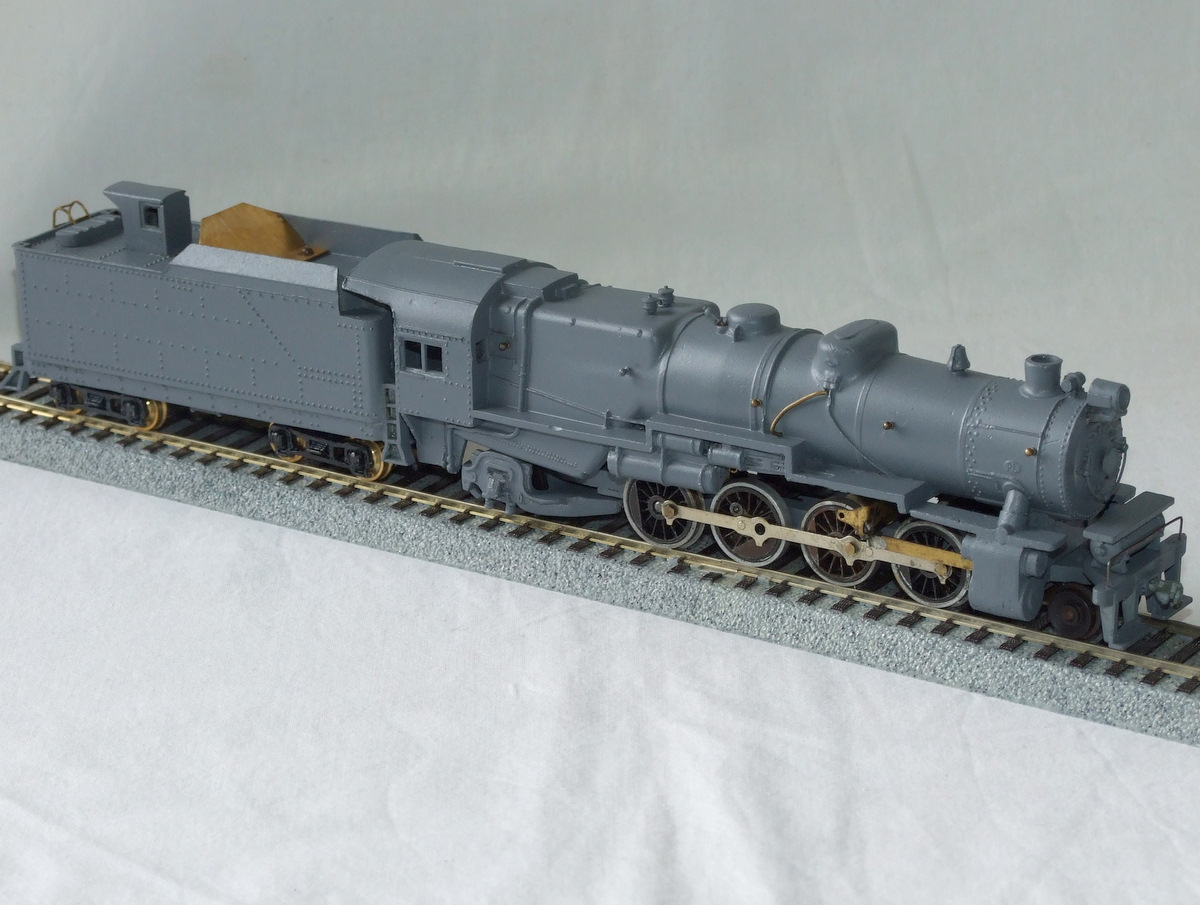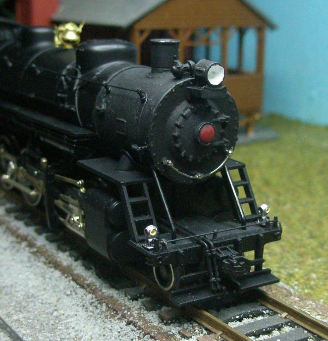 Athearn's USRA light Mikado. I purchased a undecorated version a few years ago. Recently I decieded for it to join my Pennsylvania Railroad roster. During WW1 the USRA controled all steam engine manufacturing. The Pennsy wanted some lighter weight freight movers for their rural trackage and recieved 5 of the light Mikados. They are numbered 9627 to 9631. Athearn released a Pennsy version with a high mounted headlight which was right. The 4 marker lights were placed in a standard location, two on the smoke box front, and two on the tender rear in typical USRA locations and of a type not used by the Pennsy. Maybe they were delivered like this. I don't know. All photos I have seen show standard Pennsy marker lights in standard locations. Two in front on the pilots walking surface. The Pennsy always put them as close to the outside edge and as far fowrard as they would go. In the outer, foward corner of the pilot top surface. The rear two were mounted on the tender top surface as far rear ,and as close to the outside edge as they would go. Also a rear facing headlight was mounted centered on the rear top edge of the tender between the marker lights. Returing to the smoke box front, a round number board was centered on the smoke box door. A hand railing was mounted in a semicircle on the boiler front plate below the smoke box boor. Two steps were mounted above the top two handrail supports. Athearn diid not locate the marker lights in proper Pennsy fashion. also the bell and generator were not as Pennsy had located them. The bell should be centered atop the boiler between the sand dome and the steam dome. The generator should have been mounted on top of the boiler between the front boiler plate and the smoke stack. Here are photos of the Athearn loco I purchased. I wasn't able to get the Pennsy version but a undecorated standard USRA version, with the wrong boiler front as well.