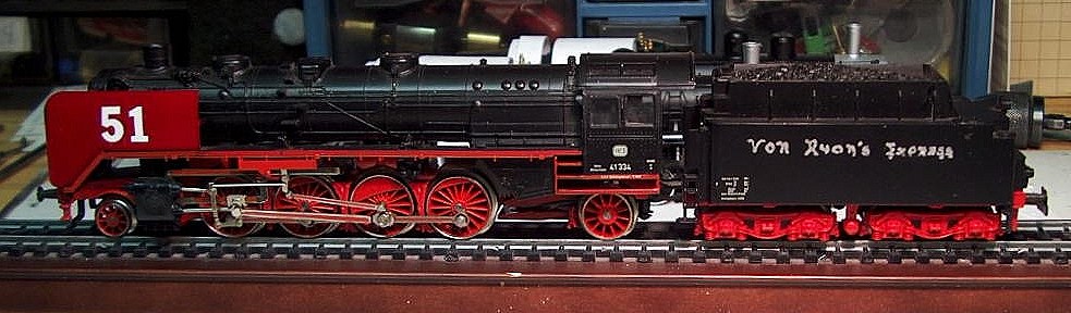 Thinking about the Mikado's I have had, one comes to mind, and another I never got is remembered. The one I had was by Marklin Hamo, the DC line of marklin. It was labeled "Von Ryan's Express". I always thought it was special but could never find a Marklin dealer anywhere to say if it was a Marklin release. Giving up on it, I did trade it away. It actually ran very well. I found a old photo of back when it was mine. The other one I still look for today is the Fleischmann 2-8-2 made for the American market. A German engine with a American front pilot, and a USRA tender. Seen many but with high prices. frank