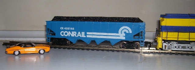 A Conrail quad hopper with a custom coal load and LL wheelsets. I bought 10 of these at a Greenburg show this summer. Alco Fan