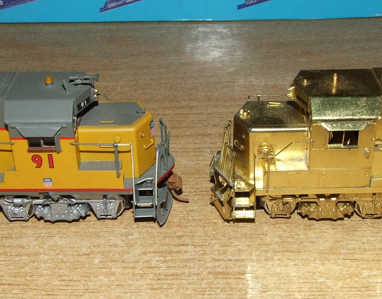 I found a photo of a UP GP40X. It is number 9002 and has the horn at the rear of the long hood just as that brass loco does.