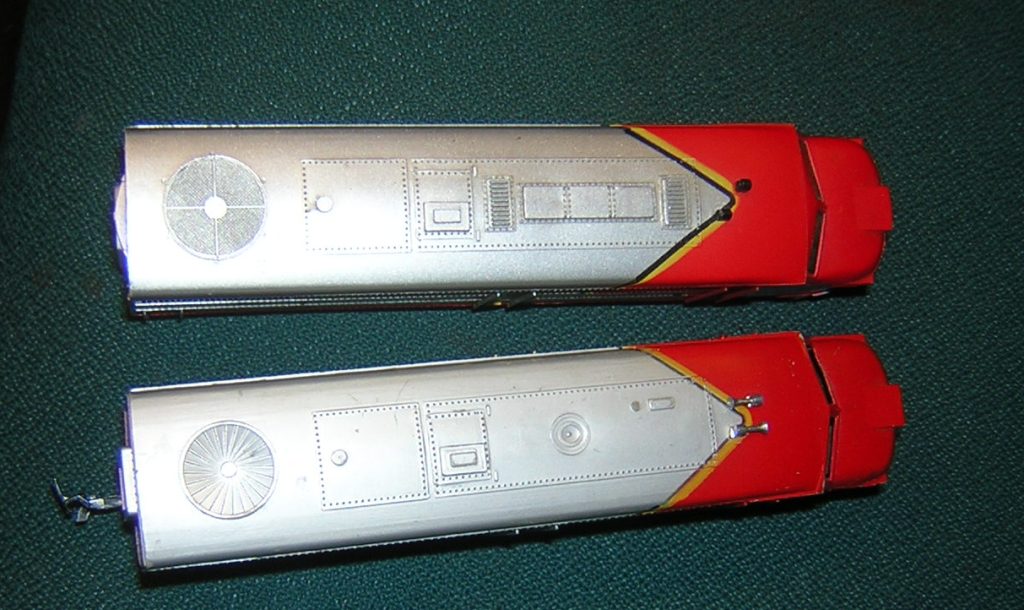 The shells differ as follows: Lionel eliminated the separate applied covers for the step areas next to the cab on the long hood end - the hole is there on the shorter side, but I've yet to see one with the cover. Lionel's shell has the cab molded in place and the dimensions are off somewhat. Lionel's shell has molded in letterboards for ease in heat stamping. Lionel's shell the entire dynamic brake piece is separate - Athearn only the side blisters are separate, the fan and hatch are molded in place. And the handrail holes are eliminated on Lionel.