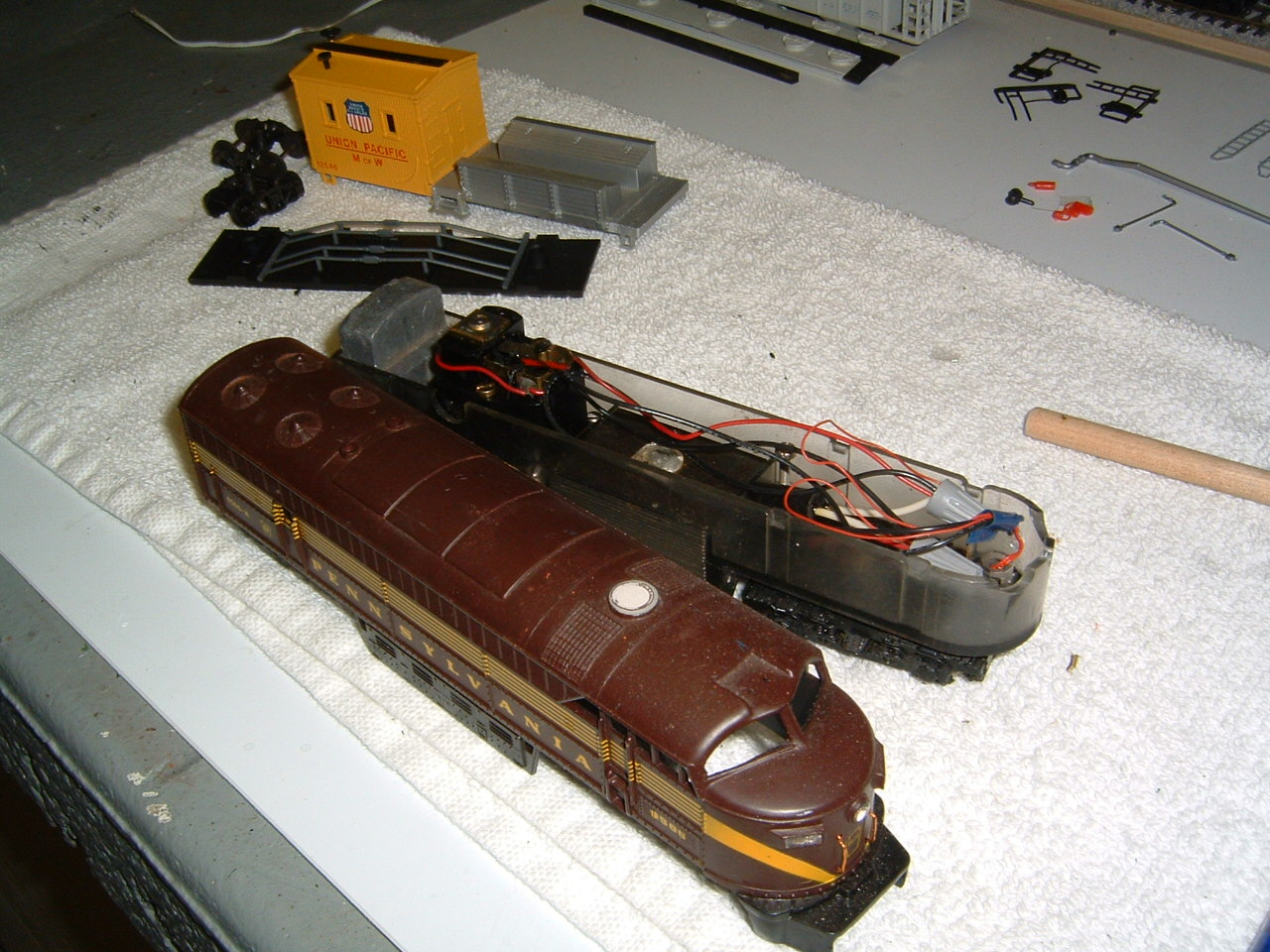 That C-Liner is an old one, probably from the first run in 65 when Mehano started making them under license from Rivarossi. I'd seen the catalog ad that showed a clear chassis, but I've never come across one. The fuel tank weight in yours is stacked steel plates instead of the lead they used later. The original Rivarossi shells were made of Bakelite, btw, and that pilot was enclosed and concealed the large coupler they used. The circular area on top that you puttied had a little black cap that sometimes gets lost.