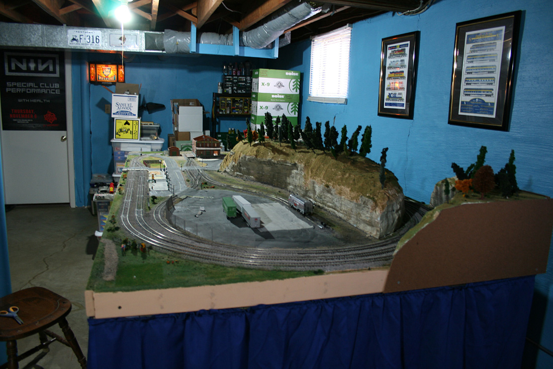 | Looking good,... I like the blue background you have--I may just paint my whole wall instead of messing with separate backdrop pieces. Did someone say "Basement!" ?? Here in Texas, we can only dream of basements, as they don't build them here (high water table, unstable soil, etc.). Without a spare room, I'm relagated to half of my garage.