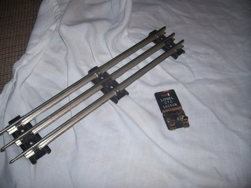 Being an HO user, this 'O' scale & 3 rail AC set up has me scratching my head when it comes to getting power to the rails. The transformer has 2 wires running to what looks like a flat piece of insulated card out of which sticks a metal 'tongue at the end & there is a secondary metal 'groove' further back from the end. They line up with 2 rails, but I cannot figure out how you position this thing & keep it held in place against the rails. Any advice? Thanks Tanked