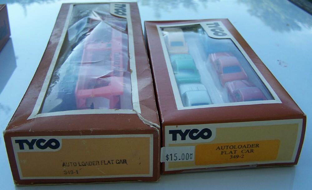 quote:Hi Tony. The Tyco Autoloader #349 came with Autos in the same box. When Tyco put the autoloader in a set, It separated the autos #349-2 from The Flatcar 349-1. They did this so they could fit them better in the set box. The 349 box was an odd size so it did not fit right in the set boxes. So if you find a 349-1 auto loader or 349-2 autos it probably came from a set. Carl