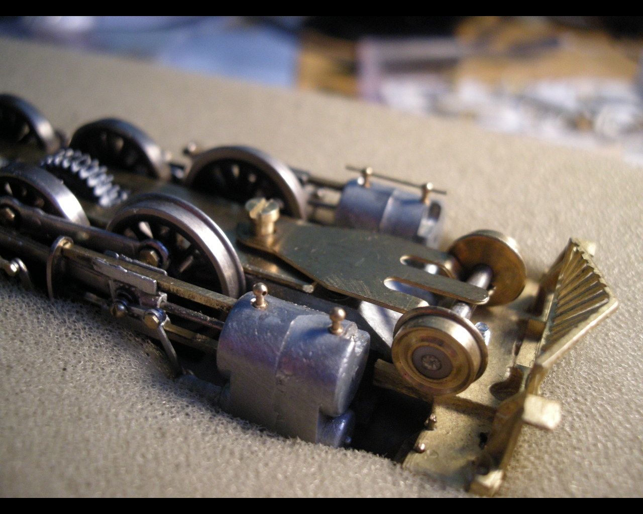 I am living in Austria/Europe, we ordered it in the USA and they missent it to Autralia, from there it came back to Austria. so it traveled around the whole world! For my friends in the USA: Australia is in the Pacific, Austria is in Europe over the Atlantic!  using a bigger hammer instead an anvil makes it easy to assembly the valve gear with the rivets. ready assambled valve gear ready for track test - erich