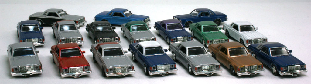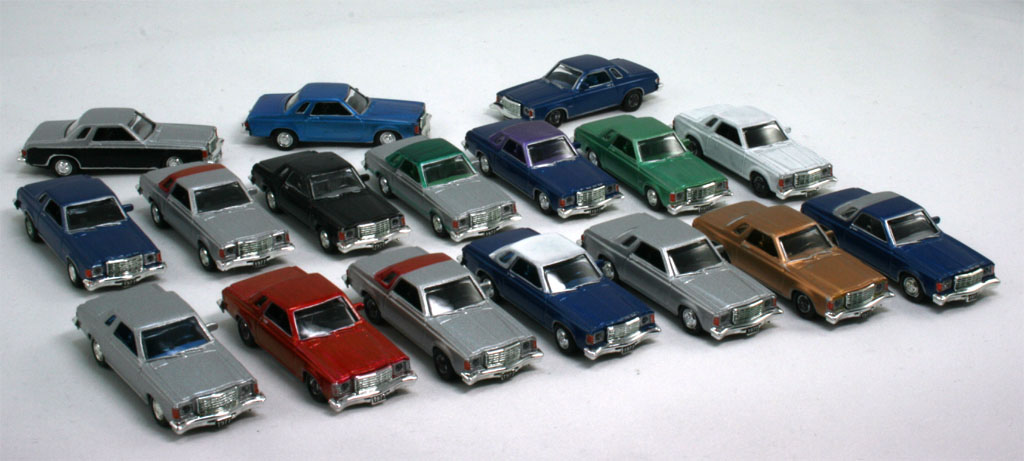 A couple whimsy jobs there, but at least 13 of those paint jobs are authentic in color, including the interiors. I detailed the turn signals and grilles as well.