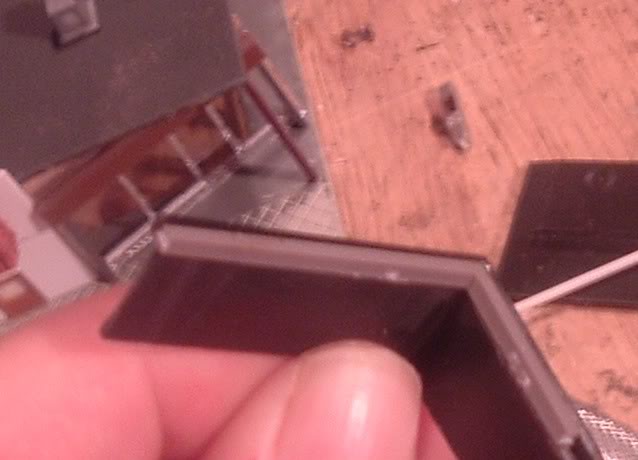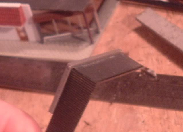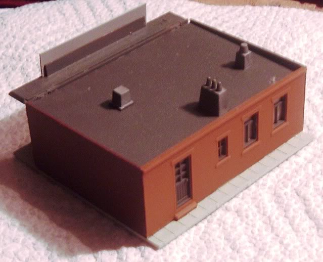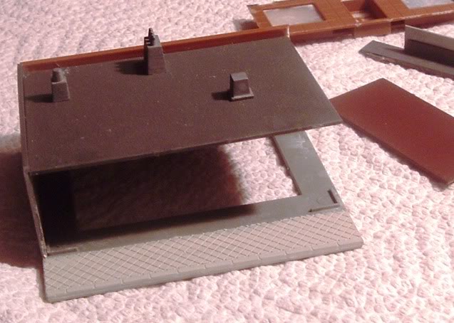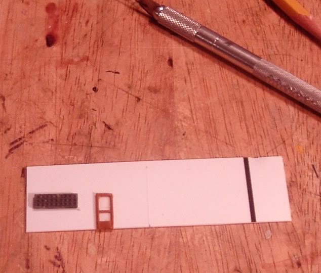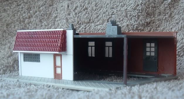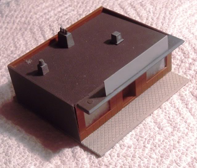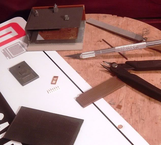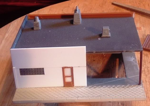 The awning and light trough came from scrap corrugated siding and 1/8" square styrene stock, a bit fussy but it works in the end...