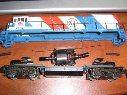 the 1776 athearn is back on track at first i did not press the motor enough for the stands to go all the way so did not make contact between motor and frame almost sat on it to do so....it runs very well only thing i need now are two lightbulbs and maybe a top contact plate because the one i have seems to be too short to get to both bulbs