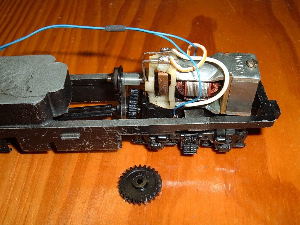 You have to reverse the pickup wipers so it runs the right direction, of course. I moved one wiper up to the front truck, since the pickup on one truck was lousy. The band does put tension on that lousy drive shaft, which I deburred and polished as well as I could, and it's well greased with Super Lube. The motor handles it fine, even tho the magnet is pretty weak. It doesn't get more than lukewarm.