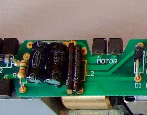 Ken, those are RF chokes, and they look fried. They may be working now, but I'm sure at least one of them is open. Not sure what turned 'em into crispy critters, but they look like they got track voltage across them. The wire windings should be copper or red.