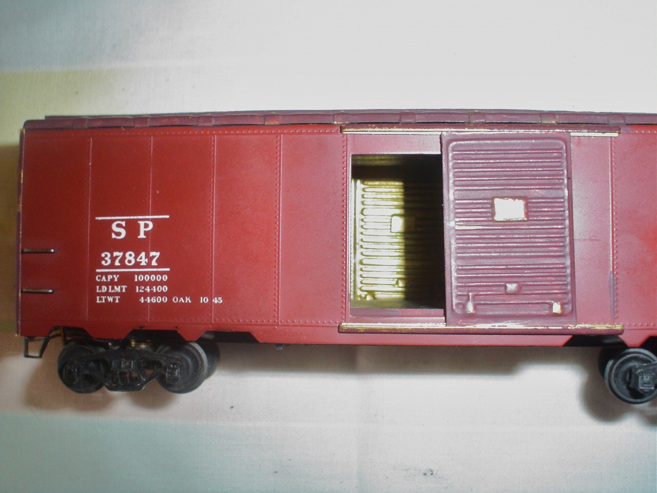 FOUND THIS AT THE TRAIN EXPO FOR 6.00 ,WHEN I SEEN IT WAS ALL BRASS EXCEPT FOR THE FLOOR [ITS WOOD],I HAD TO HAVE IT .NOT SURE WHO MADE IT ,IT HAS THE OLD LOOP COUPLERS ON IT . IT WEATHERD JUST PERFECT.IF ANYONE KNOWS WHAT IT IS PLEASE LET ME KNOW.THANKS ADAM