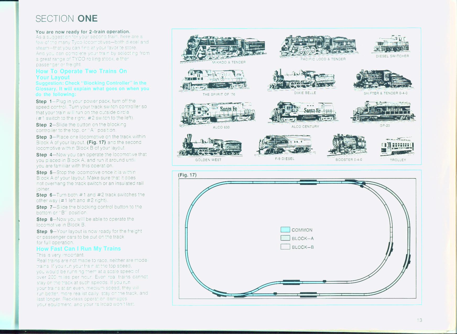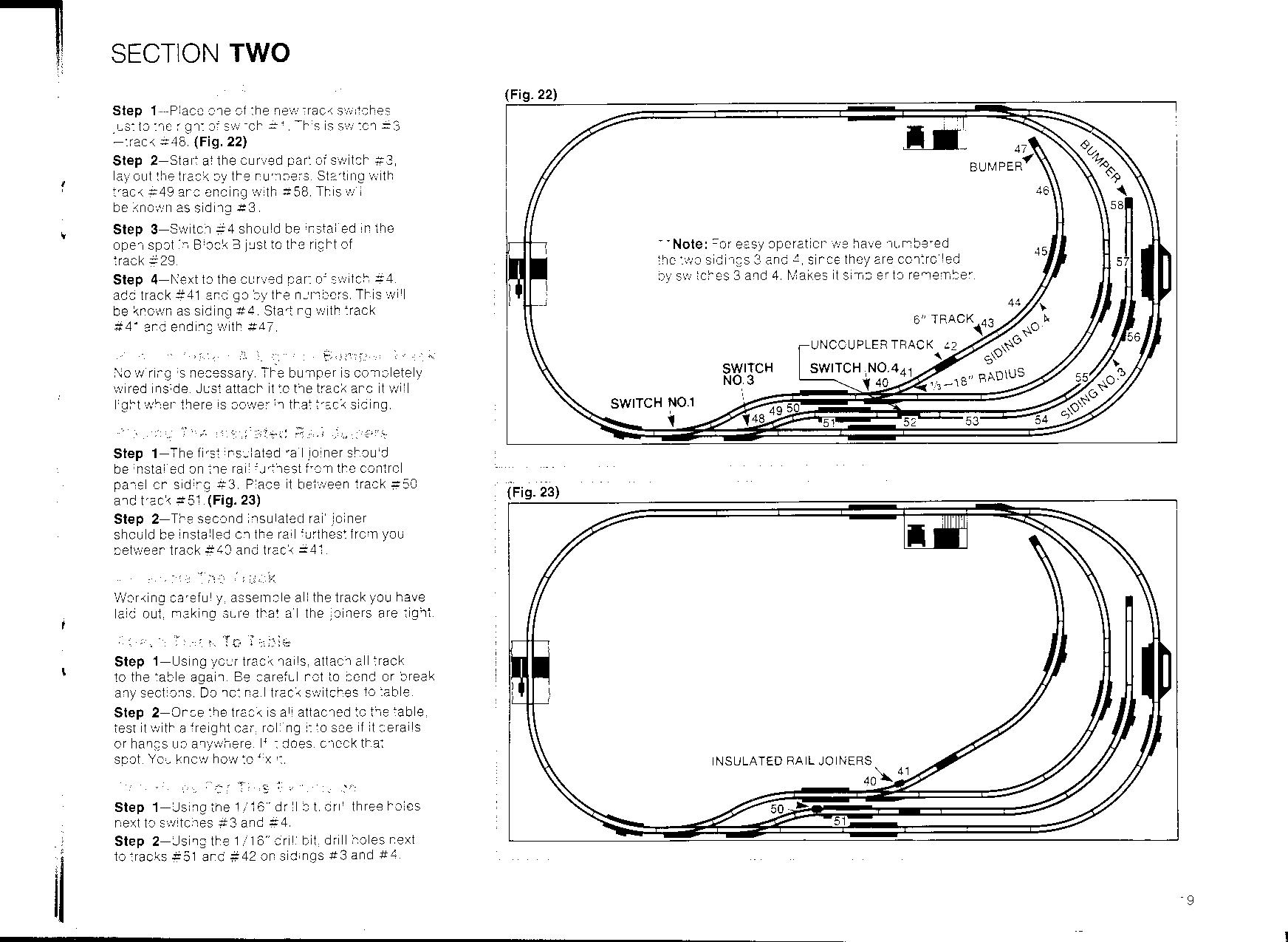 This was my first 4x8 layout. I started with the Spirit of 76 over and under set and bought the layout expander with the cash from the trusty paper route. I've attached a few scans from the instructions on the placement of the insulated rail joiners. Cheez & DJ are correct, the 2 on the outer loop can only be ran one at a time. The Tyco blocking controller handled the power distribution. Later I used an Atlas connector for that function. The two sidings and the coal dump were isolated with an Atlas connector as well. The inner loop was connected to the outer by 2 switches, insulater joiners on the connection at the 2 switches. It was a cool layout at the time.