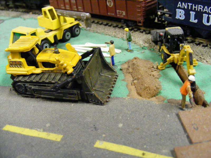 Mine is on the left of course, rest are part of a ongoing digging operation on the rental layout. I wonder why its still going on? (hehe) I thought about buying the Caterpillar ones they are really nice. But they are a little new looking, and I figured I could attempt to weather it myself for much cheaper haha.