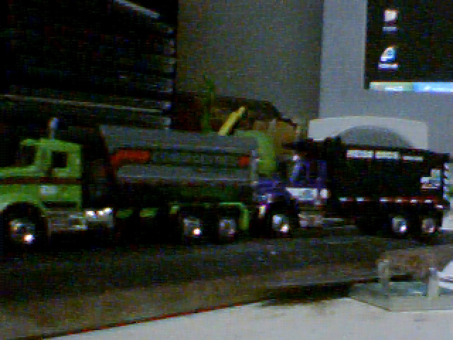 Ughh . . . I just got back from 2 hours of wandering around the aisles of Wal-Mart (sorry Romcat ) looking for cheap HO models. I found some pretty decent stuff though. I also had an "aha moment. " Here's what I figured out: When diecast model companies such as matchbox and hotwheels make their models, they make them all the same SIZE not the same SCALE. This means that their hot rod cars are the same size as their trash trucks. In the real world, hot rod cars are not as big as trash trucks. Probably about 1/3 the size. This makes it really hard for model railroaders who want a certain scale, such as HO. You really have to compare models to make sure they're HO scale. However, there are some easy pickings . Wal-Mart has these awesome little cardboard cases sitting on the shelves as you walk down the diecast aisle. Each one has HO scale models, and each one is a different discovery. It makes my day just walking down the aisle when they've just gotten a new shipment and seeing all the amazing little vehicles just waiting to be bought and stuck on my layout. Plus, they are all highly detailed and usually cost under 2 bucks. Today I also saw some EXTREMELY high detail Caterpillar onstruction equipment. They looked exactly like Athearn models, but get this: They were pre-weathered! They had a little spray of light brown paint to look like dirt. They only had road graders and a little bulldozer in stock when I was there, but I think they carry more, they just didn't have them in yet. The only bad thing is that they were 10 dollars . Still, thats 5 bucks cheaper than athearn, and they're pre-weathered. Anyway, back to my purchases. I found a cool construction playset made by Maisto. It had about 12 vehicles, including a semi. The semi was almost exactly HO scale, and I wanted it the most, but it also came with a bunch of other trucks that were close to HO scale. There were some weird tractors that werent even near HO scale though. I also picked up some semi cabs for 4 bucks apiece. I am looking for some trailers, but I think the local hobby shop might be able to help me out there. I got some matchbox trucks that I think are close to HO scale. One tank truck, one front-end loader, and one scraper. The scaper and loader need new paint jobs. I also picked up some of those new Matchbox Big Rig trucks. I got the MW trash truck and the King Concrete truck. Hopefully I'll add these vehicles to my layout soon. Check out the pics: