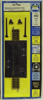 Since I no longer have the originals, I have a rendition of what the grade crossing/rerailer looked like. I've been trying to hunt down 2 of these for years. They're from the 70s, brass track, non-operating pneumatic crossing gates. Everything was black pastic, the base was basically square, maybe 4 inches wide, but beveled up so the road could meet the tracks, tapered down at the corners. Nothing like the thin Atlas rerailers we have today. I thought Atlas may have made these, but not sure.