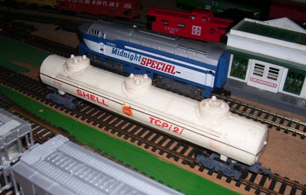 My only 3 Dome tanker from Tyco. I like the length of them even though they're not very prototypical. The Midnight Special snuck into the picture.