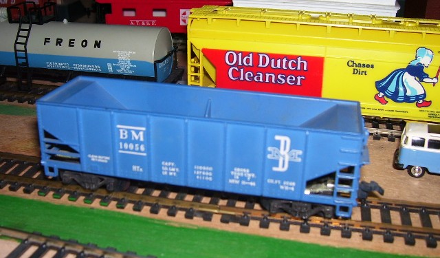 Yeah I have one of those cars too. I also have the brown Pennsylvania version as well as the black Chesapeake & Ohio car. I am looking for the other versions of the operating hopper car to go along with the operating hopper unloading trestle set #862 that I have. the set is new in the box and all the pieces are intact. The car in the set is a silver Virginian hopper. Plan to use this item on a layout in the future. Thanks for sharing this picture. badman55