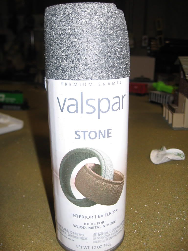 It's stone spray paint It cost 8.98 per bottle. It's kind of interesting. It really does look like stone, and it has the same texture. I am using traditional ballast, but I tested this kind on a scrap piece of track: