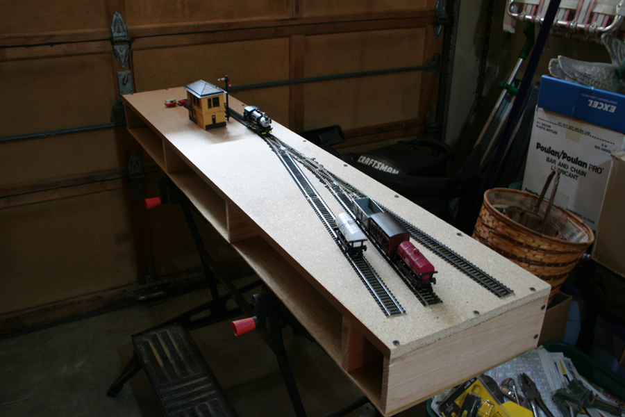 Since I have two more years left in college, and several years of internships after that, I took it as a design challenge to build myself a portable layout that I can take anywhere I happen to live. There were a couple of design parameters: