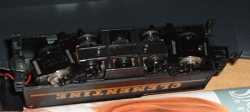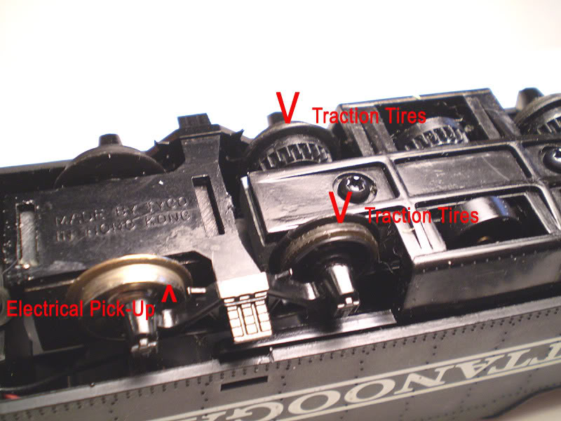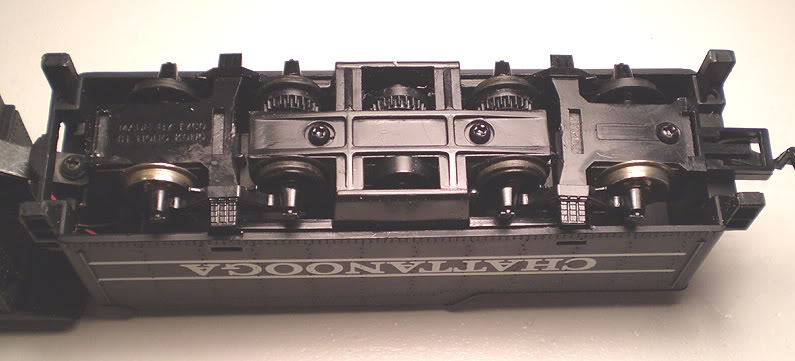 TYCO powered this version of steam engines with tender-drive. You basically have a PowerTorque truck power unit tucked inside the middle of the tender, as seen in the above image.