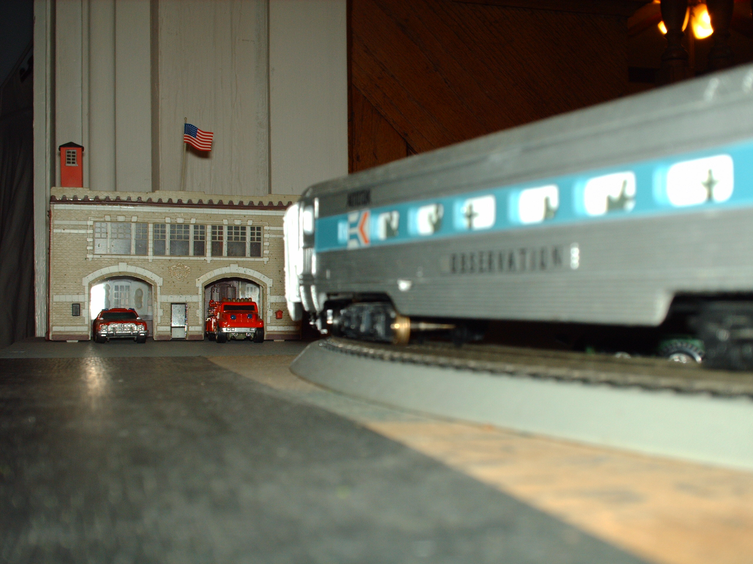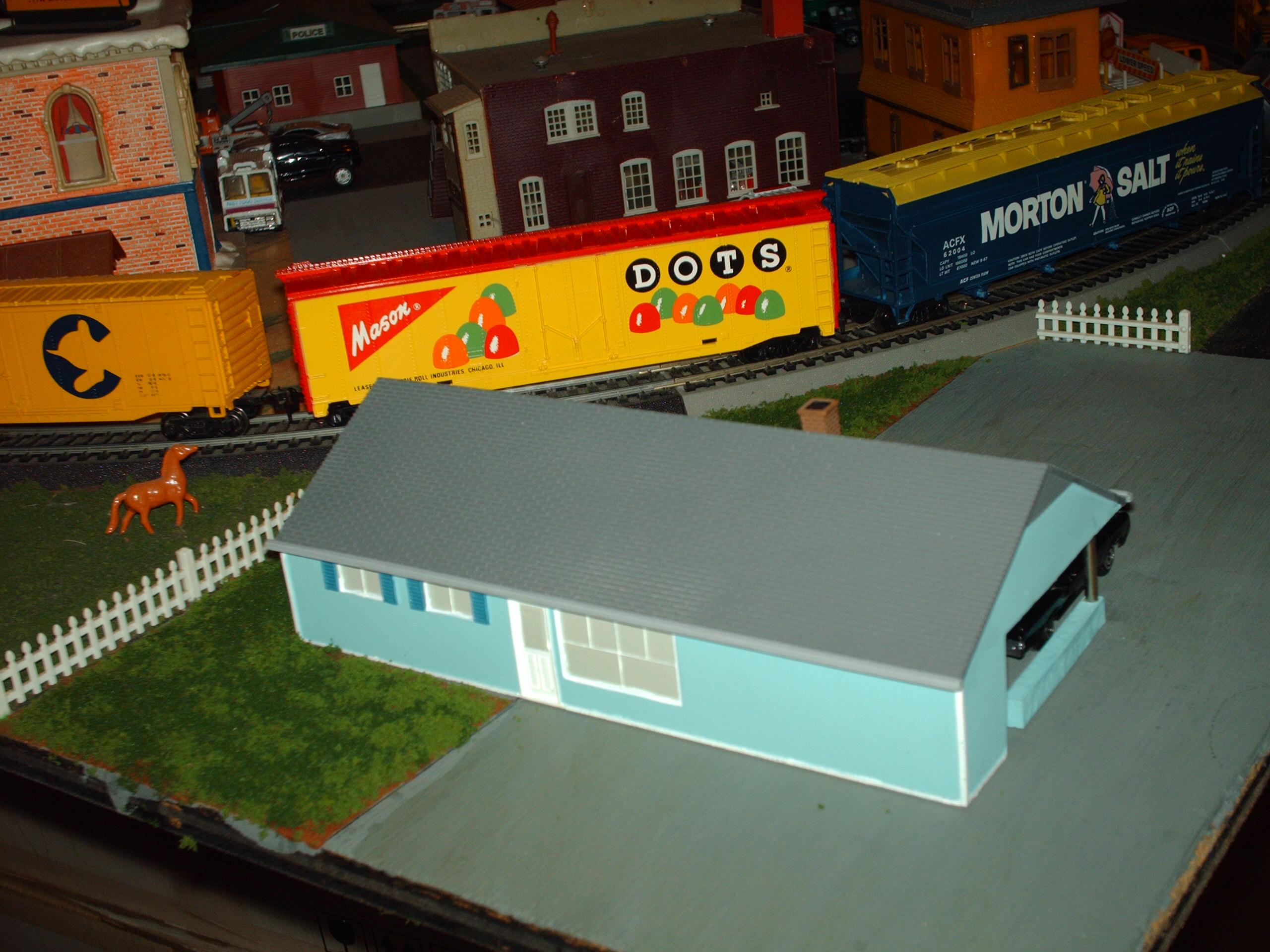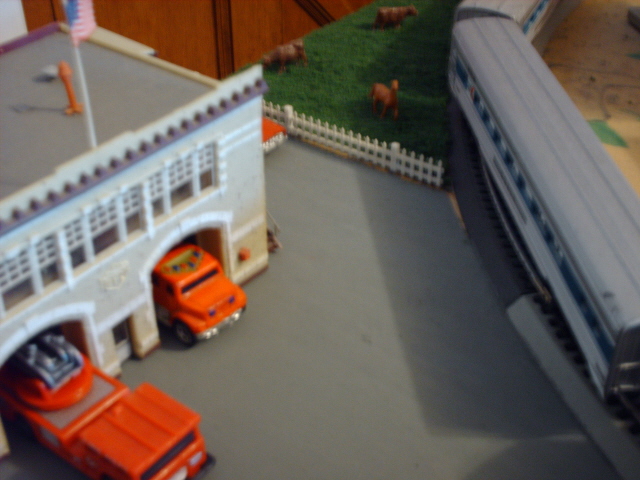 Well who am I to disapoint my little guy and fellow model railroader? This year for his birthday he got NOTHING!!! Just kidding LOL!! He got an Amtrak observation end car and his house. Well once he had house in hand he was on the hunt for some land. With no luck Finding available land, He went to the Mayor (Mom) and city planner (Dad) to see if they had anything. Sadly at that time we had nothing to offer. We had been batting around the idea of moving the Fire Department from the outskirts of town to the city center though.