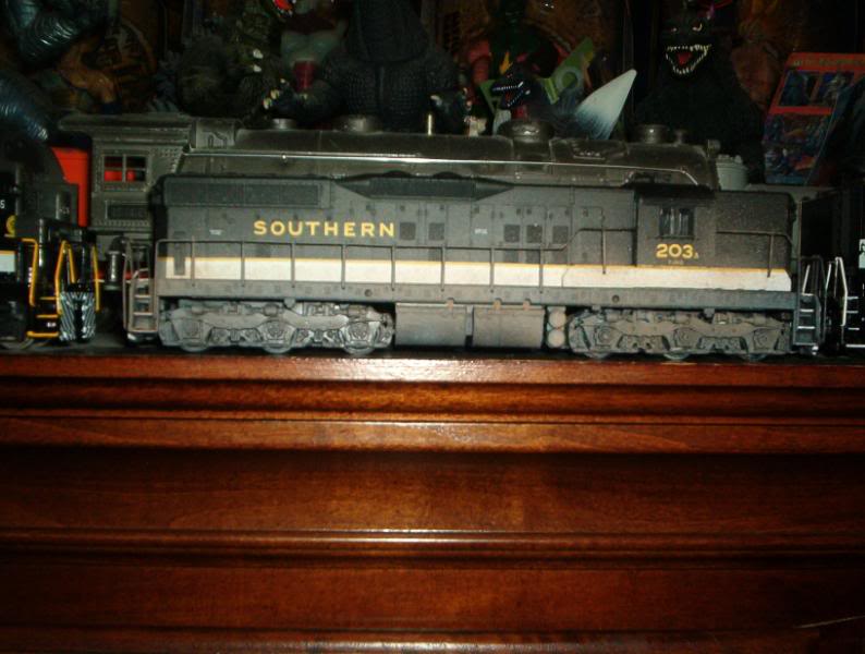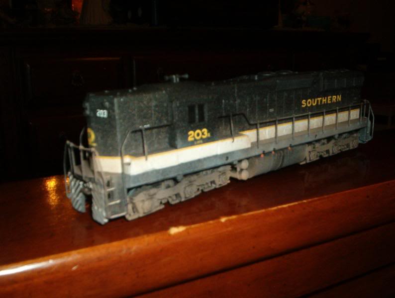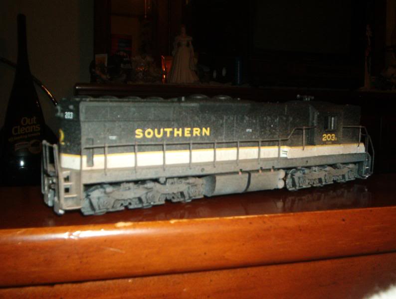 i started this one a couple years ago. it's an athearn blue box undecorated SD-9 dummy unit. i started by removing the factory molded on ladders, then i cut the big step that athearn used to mold on their pilots off. i still need to put some ladders on it & couplers, but other than that I'm done. i started out going to do a light weathering on it, but my cheap airbrush has a mind of it's own. i have never weathered anything before & this is just my second model train I've ever done. if the pictures are to big, i apologize, i couldn't remember how big they could be. hope you enjoy.