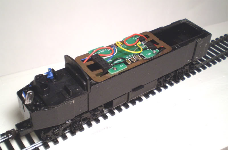 Tony L. or someone with more DCC knowledge might provide some input about what one might be able to add to the circuit board seen below too. Since MRC has long been into DCC, I'm assuming this should be easy to work on in that respect. Regarding date of release, I noticed the fuel tank says MRC 1999 on it, as does the green circuit board.