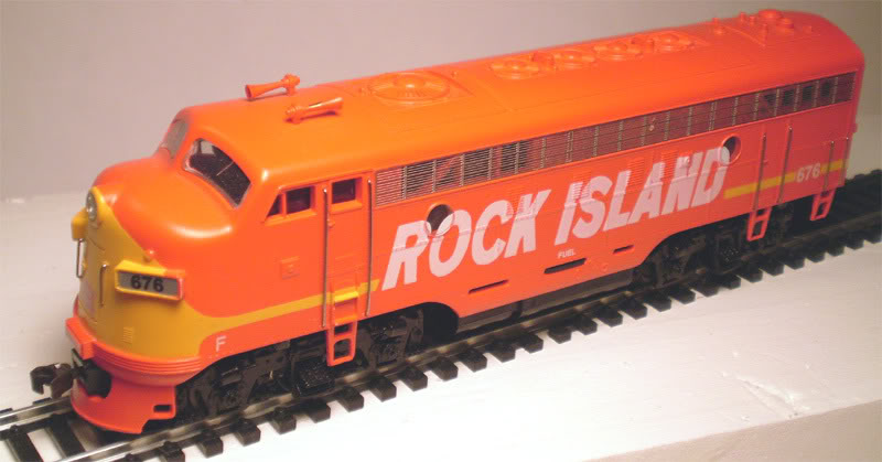 /tyco/forum/uploaded/Tony Cook/MRCLogo.gif I'm guessing MRC has seen the writing on the wall for these locos and won't be doing anymore of them. I bought a Rock Island F-7A not long after MRC released them and they are odd. Though they've been given brass horns and have separate metal grilles and wire grab irons, they still aren't that good looking. My Rock Island example does run well and they are packaged in a nice large box with foam insert...semi brass loco like. My Rock Island F-7A even came with a silly MRC button for wearing on your engineer's hat...as if you'd wanna promote that you own and operate one of these F-units...then again I wear a TYCO t-shirt in public often so I won't throw any stones. Anyhow, they seem to ride a bit too high and I've heard and noticed some rivet-counter's delight errors about the body. Maybe the poorest feature of the MRC locos is the weak paint jobs. Some didn't even seem to get some basic lettering sytles correct and colors were often off too. I remember seeing a SOO LINE F-7 in the MRC series and they seemed to have botched the font used for the SOO down the loco's side.