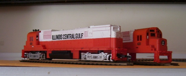 ICG C430 Alco MU2 drive with closed number boards. Original not a PT shell that is converted and has a screw-in light colored tank weight. The shell is the same as the powered unit with a sticker herald on the nose.