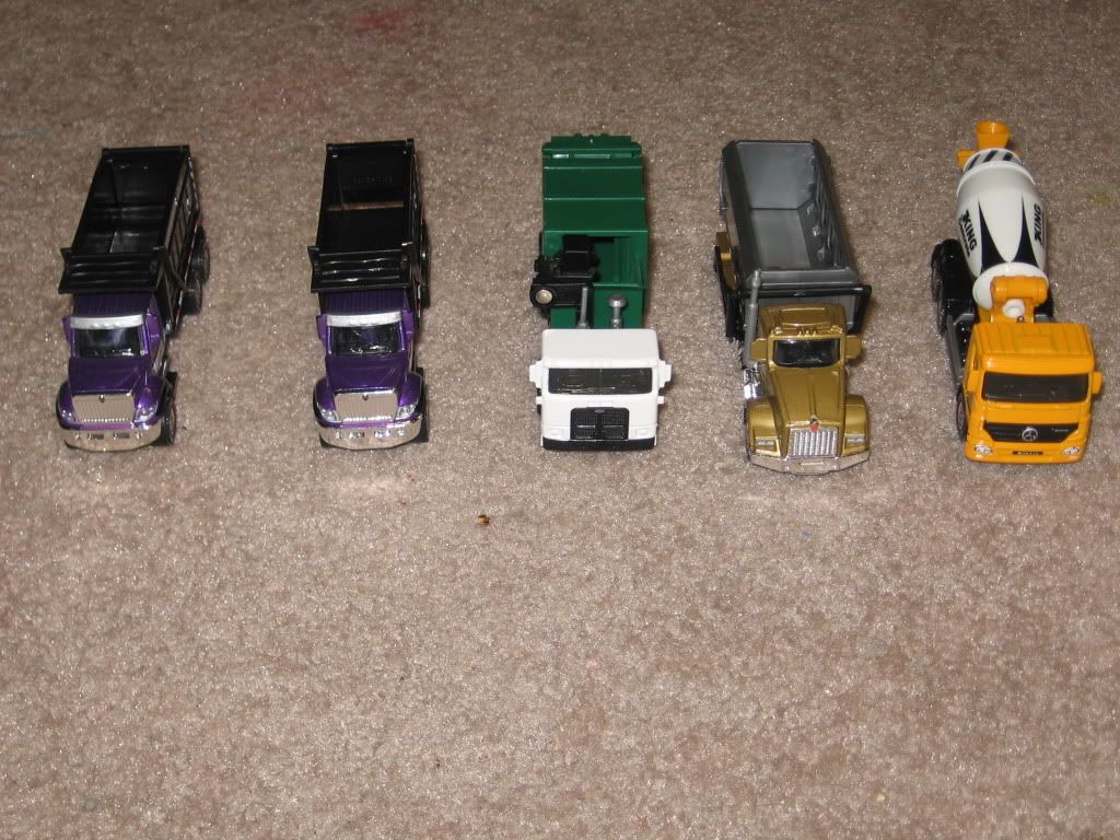 um excuse me there is a truck forum in here oh well nice trucks anyway BUT never hurts to have more than one truck forum I wish that rolloff dumpster truck came in WM oh if you do wanna know the scales some of the newer "old" trucks do have the scale on the bottom & one I got Which is a Bandag Bandit race truck says 1:86 Close enough! Its one I got at the local toy show here for $1! there was a white one & stupid me for not getting it!
