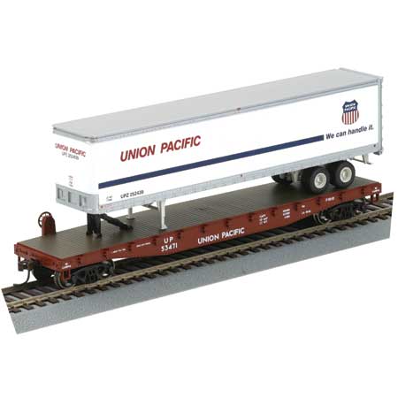 HO RTR 50' Flat w/45' Trailer, UP #1