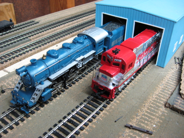 Yes MB -- my layout is a bit messy but i don't care right now -- Glad you noticed L-O-L. The Royal Blue caboose i purchased off Ebay. I actually have several of them as i have several Royal Blue still mint in the box.