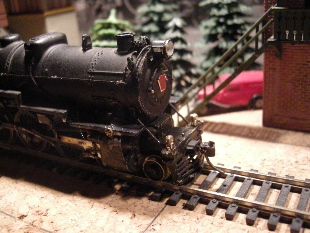 This is a Hobbyline static model that has the cast on details removed and wire grabs and railing installed. The shell was fit onto a modified Tyco chassis.