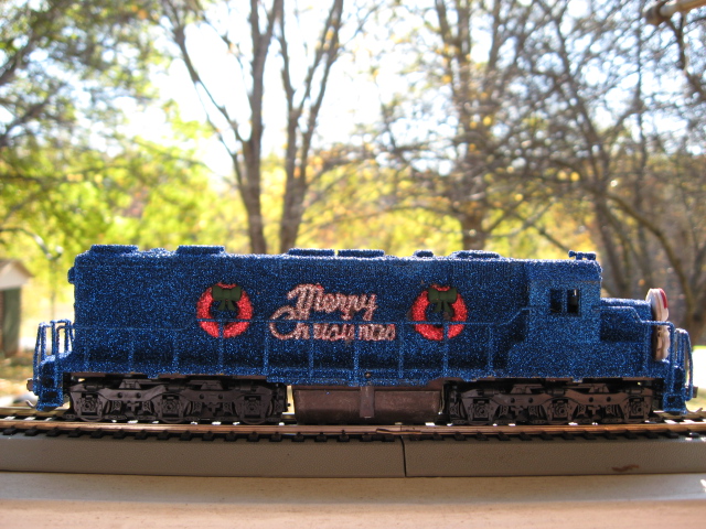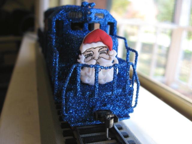 hey crazy idea! Now that Xmas lights are out stick some LED lights on the glittered loco