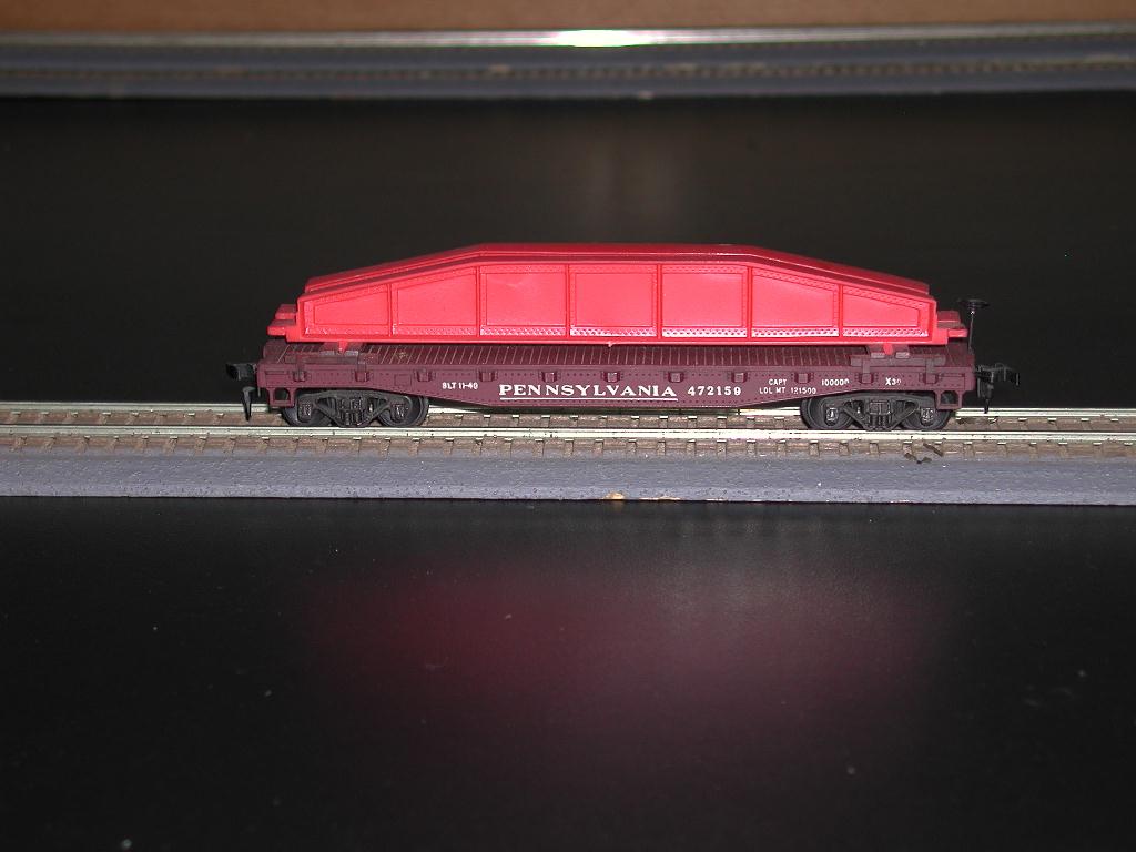 Here is a PRR Girder Flatcar Painted Version. The color is more like Boxcar Red than Tuscan.