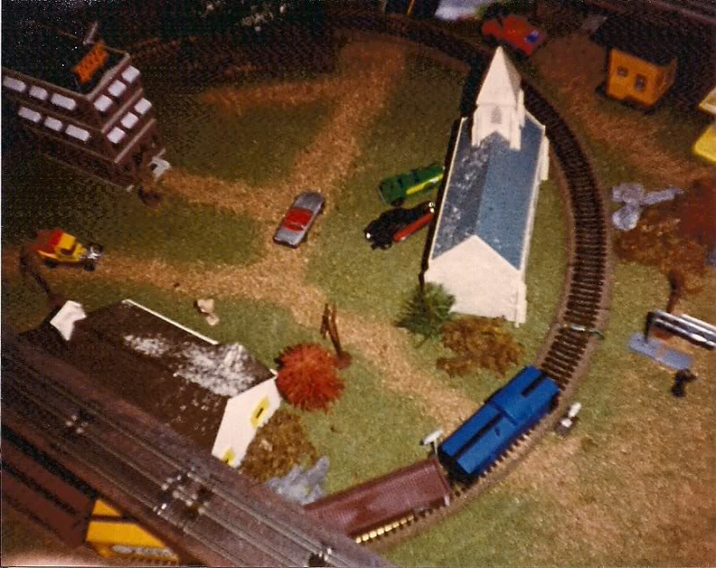 Sadly, there are only 1 or 2 pics of my childhood layout. I put my hand on one of the pics about 4 or 5 years ago, and cannot find it now. I do recall the photo was from an old Kodak Brownie camera, and the print was semi-glossy. I believe my Aunt took the pic sometime between 1978 and 1979, and finally bequeathed a stack of pics to me, of which the layout pic originated from. Before that, I never had a pic of my childhood layout, even with my older sister having a Polaroid "One Step" Instamatic Camera (of which I wasted untold amounts of film). I do regret not snapping a few pics of it.