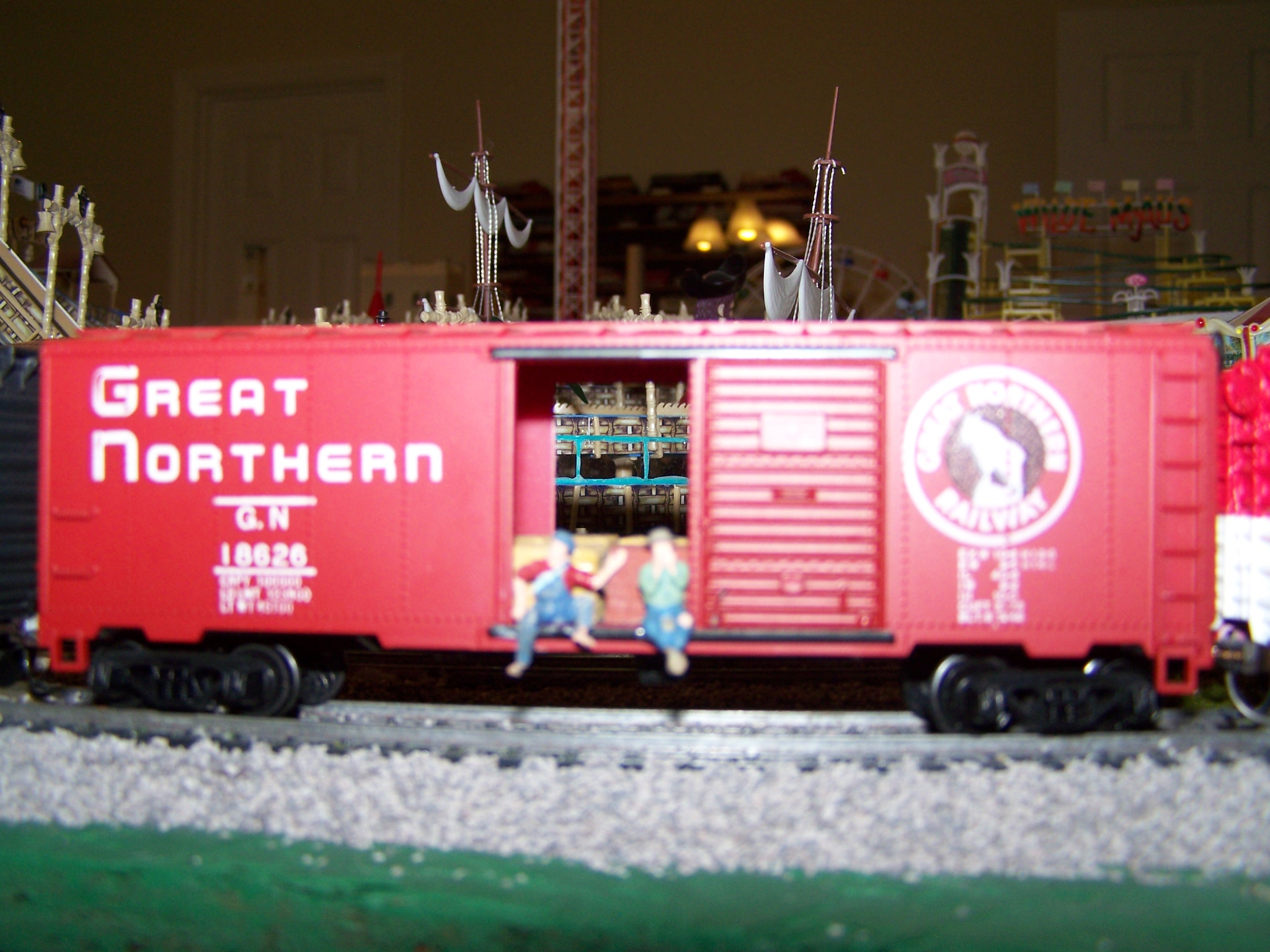Flamethrower, nuff said. My friend owns a version of that B&O boxcar but its battery powered (still on the orginal battery oddly enough) and makes generic steam sounds. I've always wanted to take it to a club, secretly stick it on the back end of one of their trains and walk away haha.