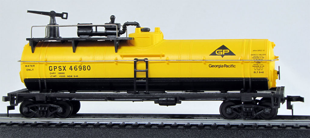 quote: Hey there GoingInCirclez, I have one of those spray tank cars as well, or at least my son has it. It is blue and it reads, United States Air Force. It is one of his many military train pieces.