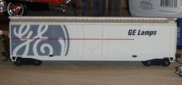 I like the GE car! Is it a Tyco? My CotW is a half box car half flat car by Cox that the Great One gave me for Christmas this year. I had never seen one of these before and it is only my second Cox car. It is like brand new but it came in a long Tyco brown box.
