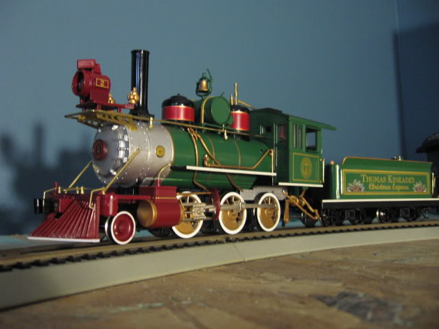 This locomotive is part of a Thomas Kinkade train set, which was fairly popular when it was released. My aunt got the set in 2002, and said I could have it for Christmas. However, she only said "an old train set" to me before Christmas, so I had crazy ideas of a Lionel, or possibly Marx set coming my way. This is still very nice though!