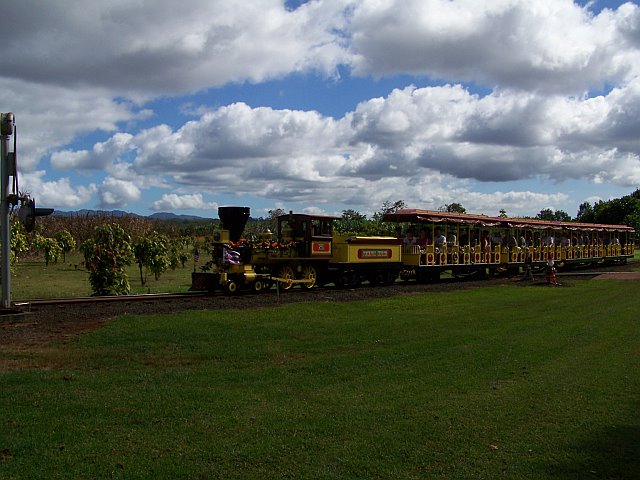 Hi Neil, I was in Hawaii over Christmas and took a pic of the train at the Dole plantation. I didn't ride it, it looks like an old steamer but she wasn't smoking. I suspect it was converted to some other form of power. I'm on the road for work this week but will try to post a pic of the train this weekend. Tom Found one on the computer.