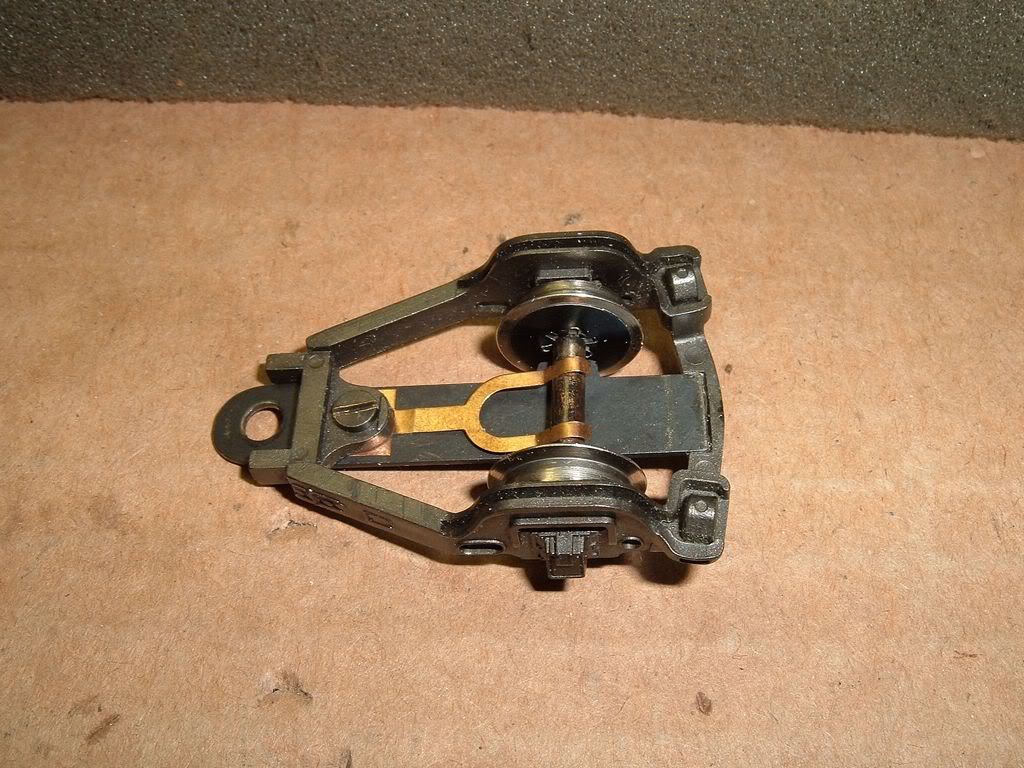quote:The four holes in the bottom cover are for mounting the brake shoe detail. There should be a post somewhere to hook the spring to, because pickup from the front truck will be spotty without the spring to ensure contact, but I don't see anything in the photo.
