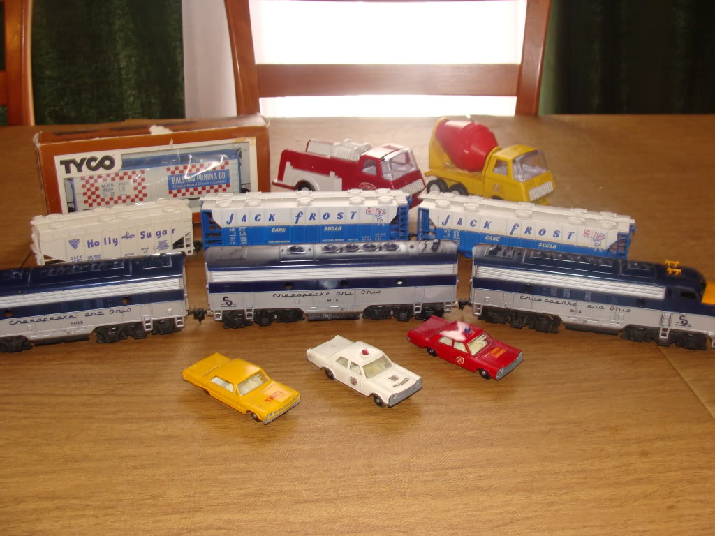Bought the following items at a train show in Wallingford, CT. Tyco town was there as well and had set-up a really nice layout combining rail and slot car. The kids couldn't keep away from it as there was so much excitment of seeing if the train would crash into the car! I got the Purina car and the C&O units for $10.00. The Matchbox cars were 3/$21.00. The Mini-Tonkas went for $3.00 each. The Sugar car was $5.00 and the Jack Frost cars were two for $5.00.