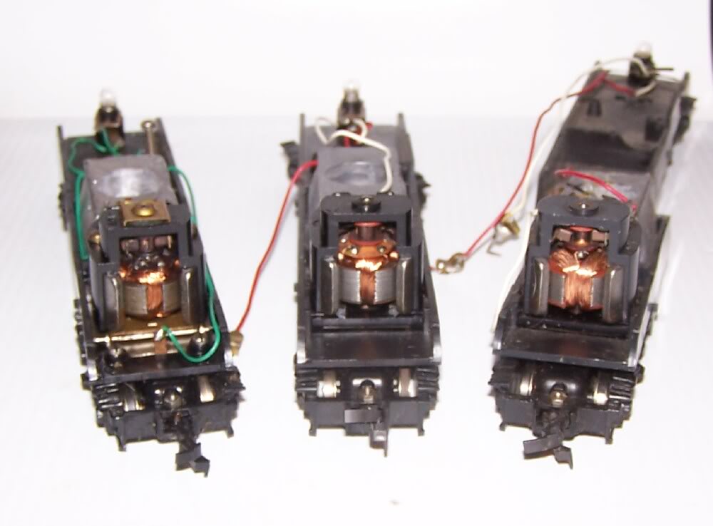 quote:Jerry, the C&O is the only one that's a later run with a 3 pole motor. The wire isn't broken, that brass terminal just slips behind the brush.