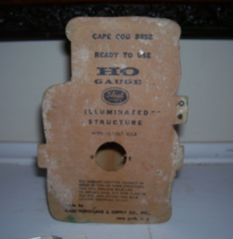 I was surprised to see this in a box of junk houses. It's by Ideal and has a bulb which I haven't tried and won't be disappointed if it doesn't light. it's old and that's neat. This is probably not the correct chimney. The other pic shows the info on the bottom. Anyone know what year it might have been made?