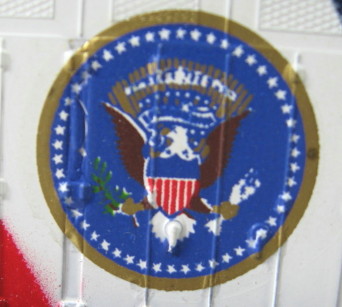 This is the Presidential Lettered seal - hard to find in excellent condition - Can make the engine value soar depending on condition of seal. this was Tyco's first issue seal on 1776 lAlco 430 models from 1973-1974. Supposedly a recall was ordered by the Goverment during this time on this seal as Tyco didn't have permission to use this seal with lettering - well as you can see many survived and i own several - one is mint in sealed plastic