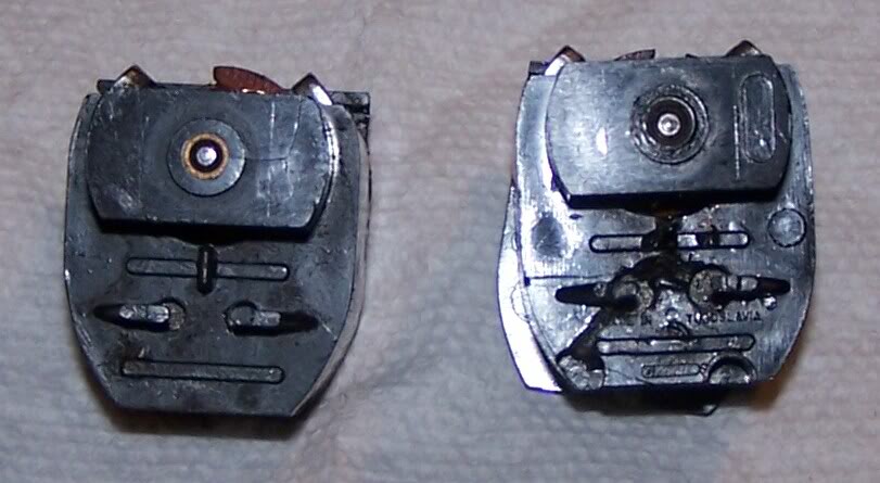 Here's the two units , 3-pole on left, 5 pole on the right. Notice the damaged area which holdes the spring tensioner, the loop is broken and gone :