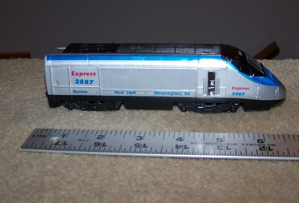 Among the long list of projects I've got written down, if not to accomplish someday, is to convert some interesting toy HO engines to actual powered status. here's one I found at a Model Railroad hobby shop, it's a floor push-toy, but it's detailed enough that it would fit in with a realistic operation, I think. What do you think? Not sure where to start looking for a powerplant, as the high-speed stuff doesn't have the exposed trucks and look different than your standard Diesel switcher or long-haul engine.