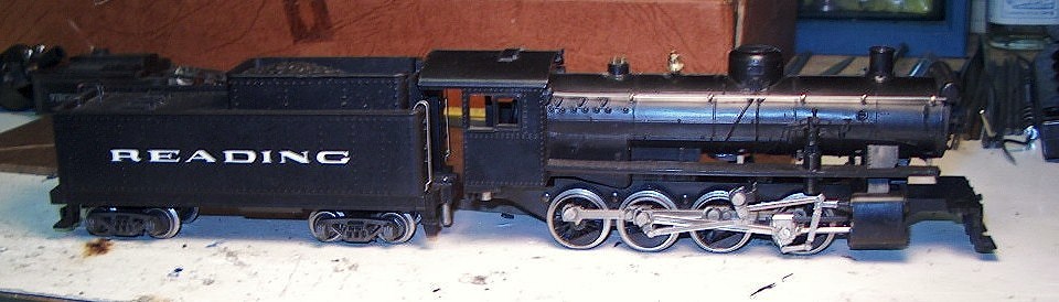 At a show a few weeks ago at Paramus High School a dealer had a lot of Lionel Ho. With them was some Rivarossi 2-8-0s. He had both the franch and english cab version. The only difference was the cab. It also had two different smoke box fronts. A plain one and one with a feedwater heater tank. The loco came with and without valve gear. The tenders coal bumker had either a top edge sloped down towards the front, or a flat top edge. The photo shows the flat coal bunker, a feedwated heater, and valve gear with the english cab. I know the Lionel name was on none of them. This dealer said that all the ones he had were lionel. He had a few different types. If Lionel sold this loco. What was it's appearance. What made it different. * I have seen 1958 and 1959 catalogs and no Rivarossi 2-8-0 is there. Lionel started in 1957 now was ti offered then. If so what did it look like. frank